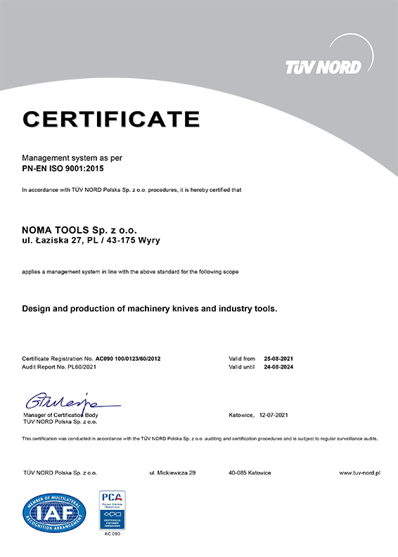 Cutting tools provided with NOMA logo are present at the market since 1985. We have commenced as small family business beginning from typography knives manufacture in a workshop - a garage - at suburbs of Mikołów.